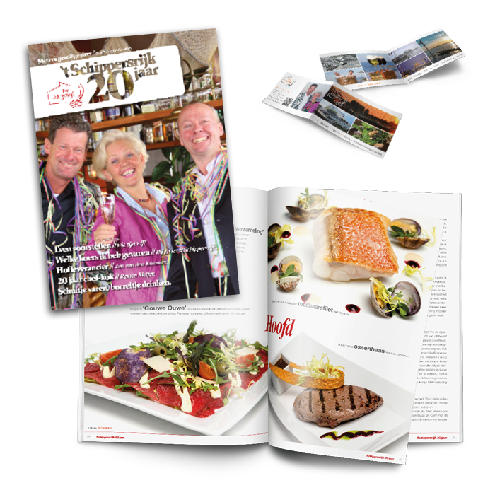 Basisidee werkt sinds een jaar of 10 voor dit geweldige restaurant. Van de menukaart, website, magazine tot het jaarlijkse Muziek op ‘t water Spektakel. Wij ontwerpen alles nog steeds met heel veel plezier.
